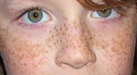 • النمش: نقاط صغيرة داكنة تنتشر عادة في الوجه والكتفين والذراعين، وتزداد وضوحاً عند التعرض للشمس.